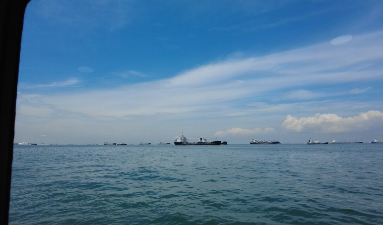 싱가포르 앞 바다는 저런 유조선이나 컨테이너 가득실은 선들이 많이 다닌다.