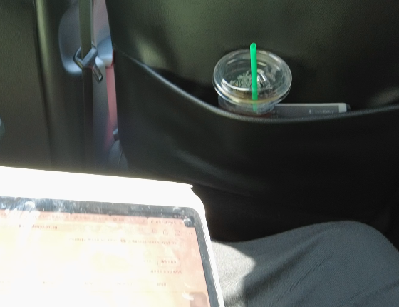 스벅에서 아아 사먹다가..... 택시 늦게 와서 부랴부랴 가는 중.