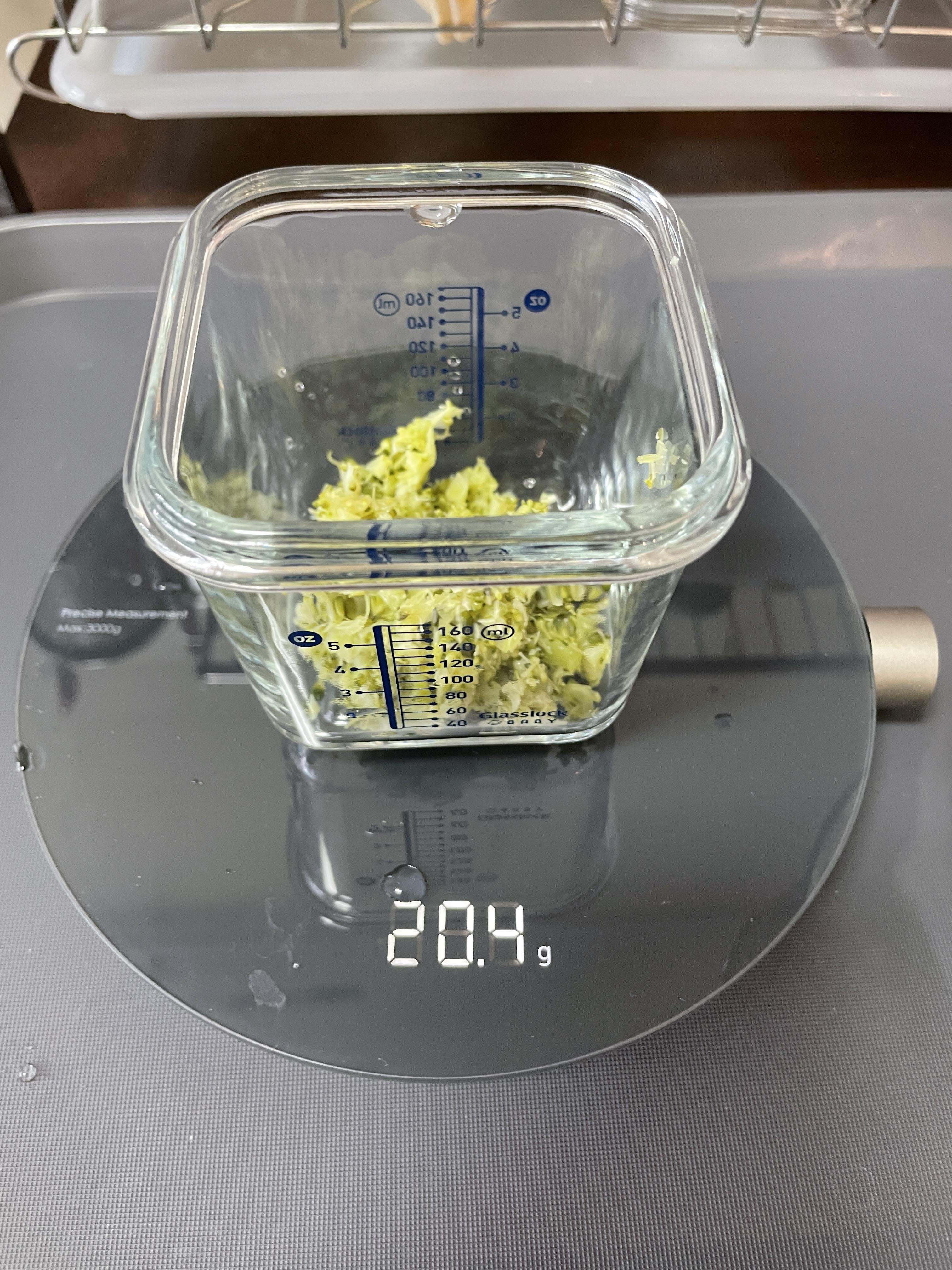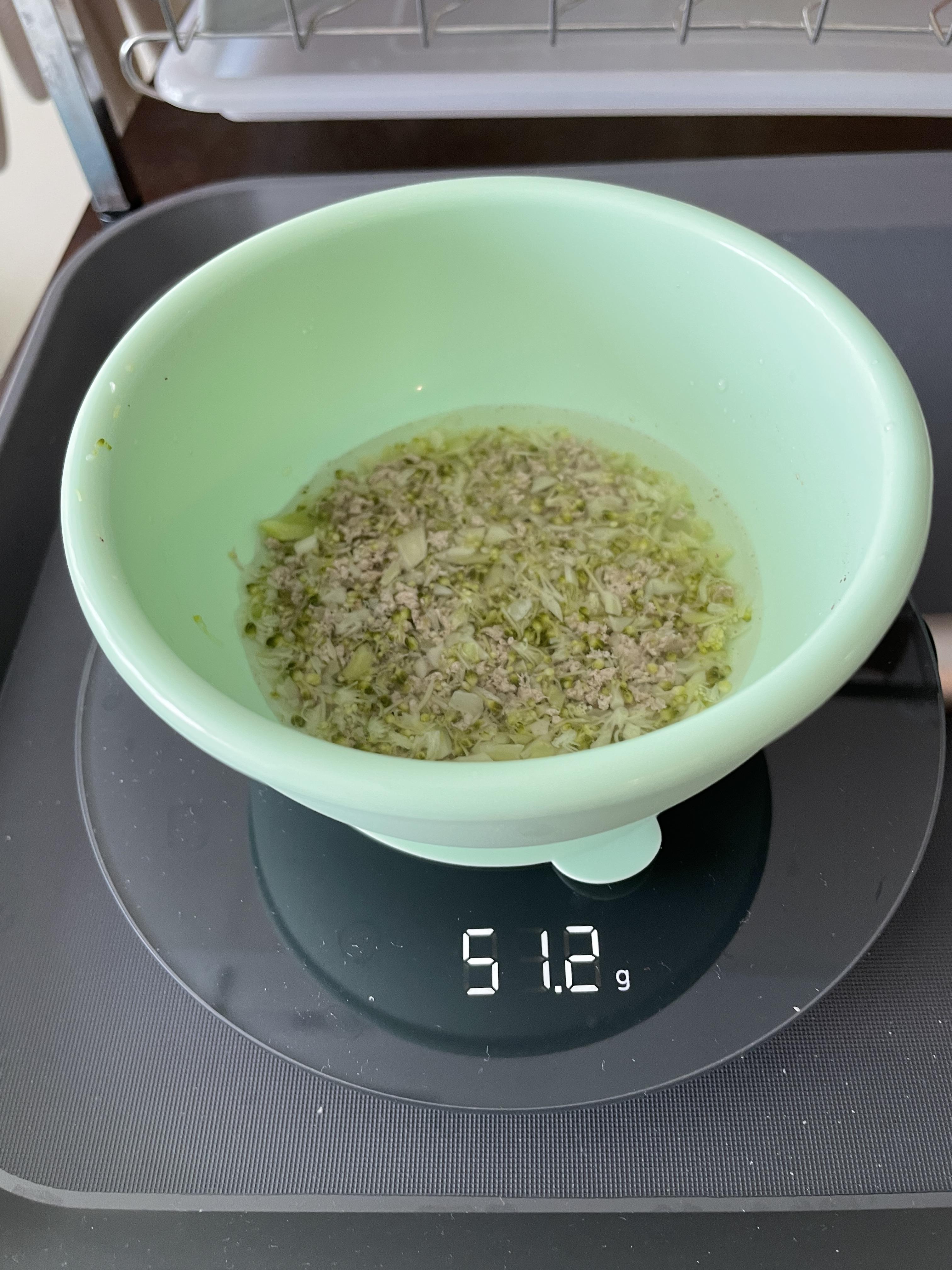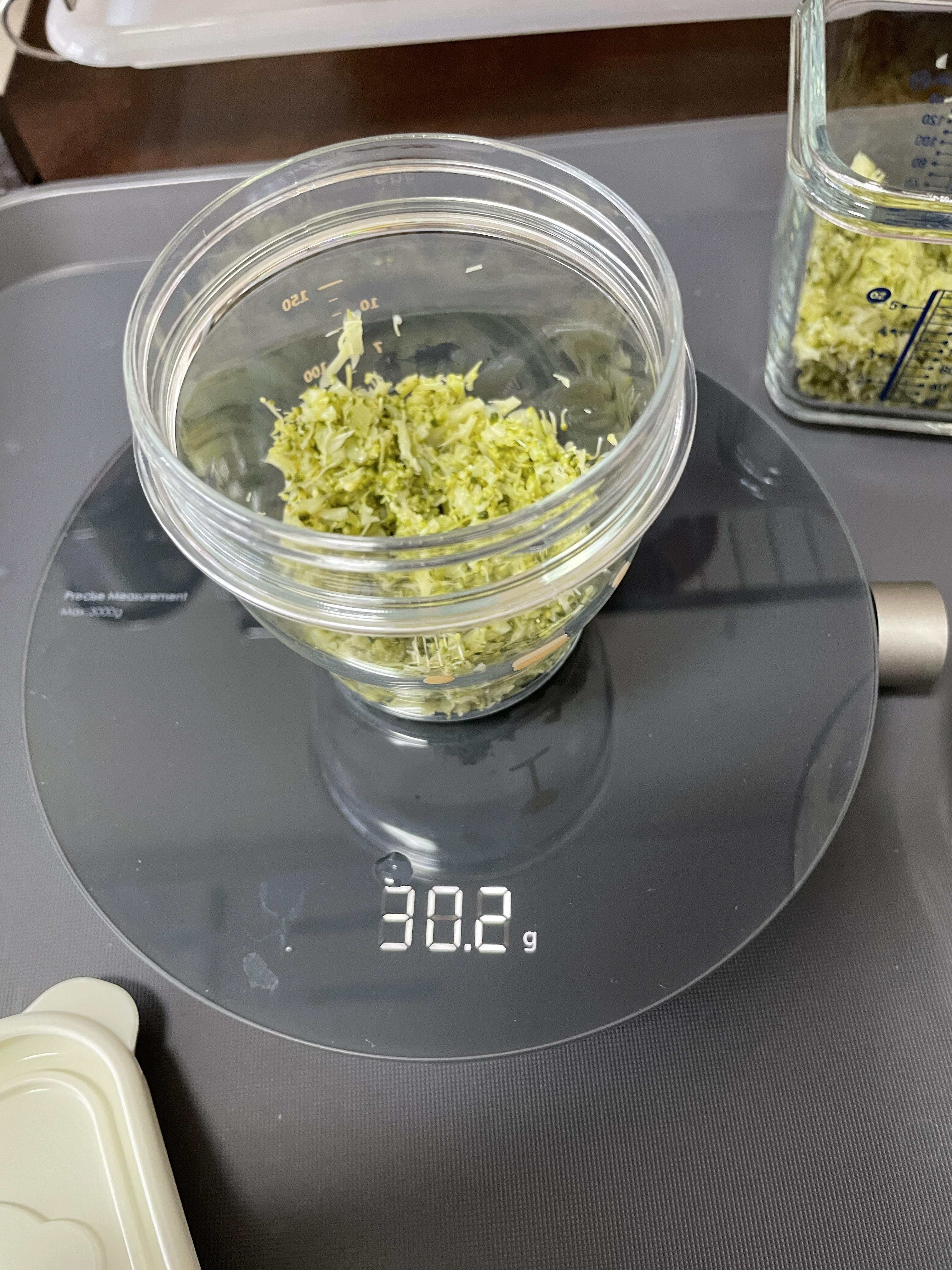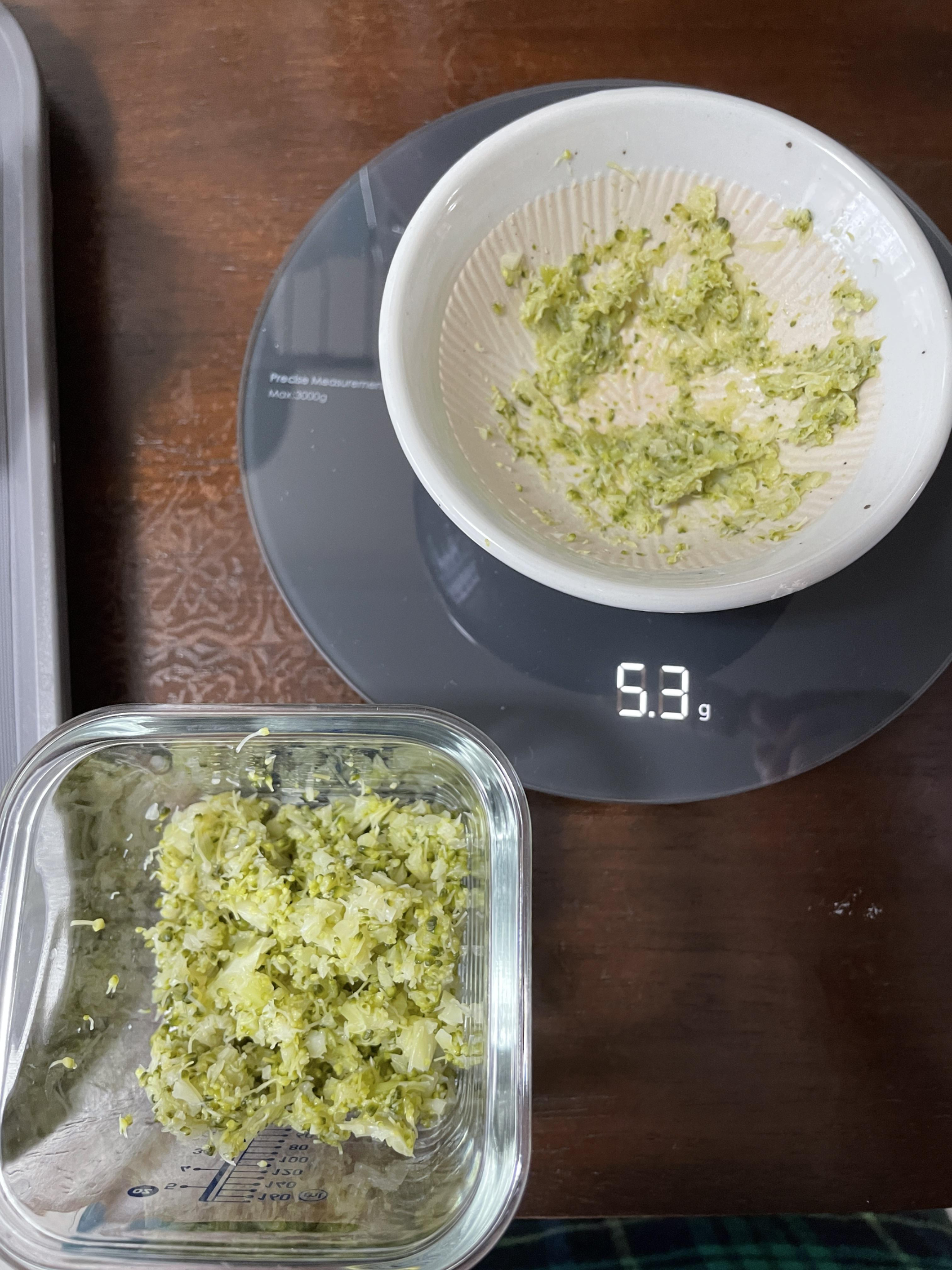 각각 아침, 점심, 저녁에 먹은 브로콜리다. 저녁에는 많이 흘려서.. 20g정도 먹은 것으로 추정.