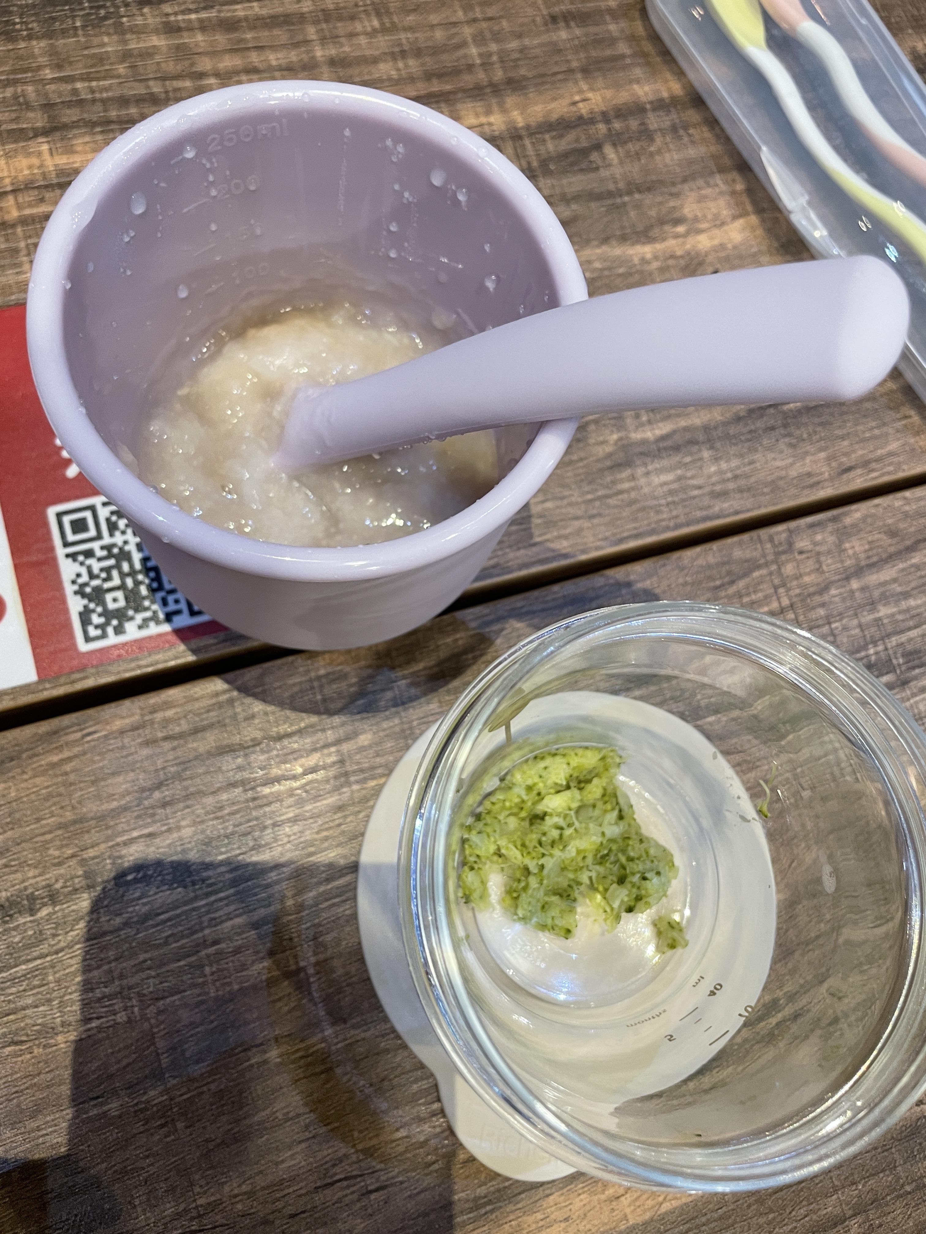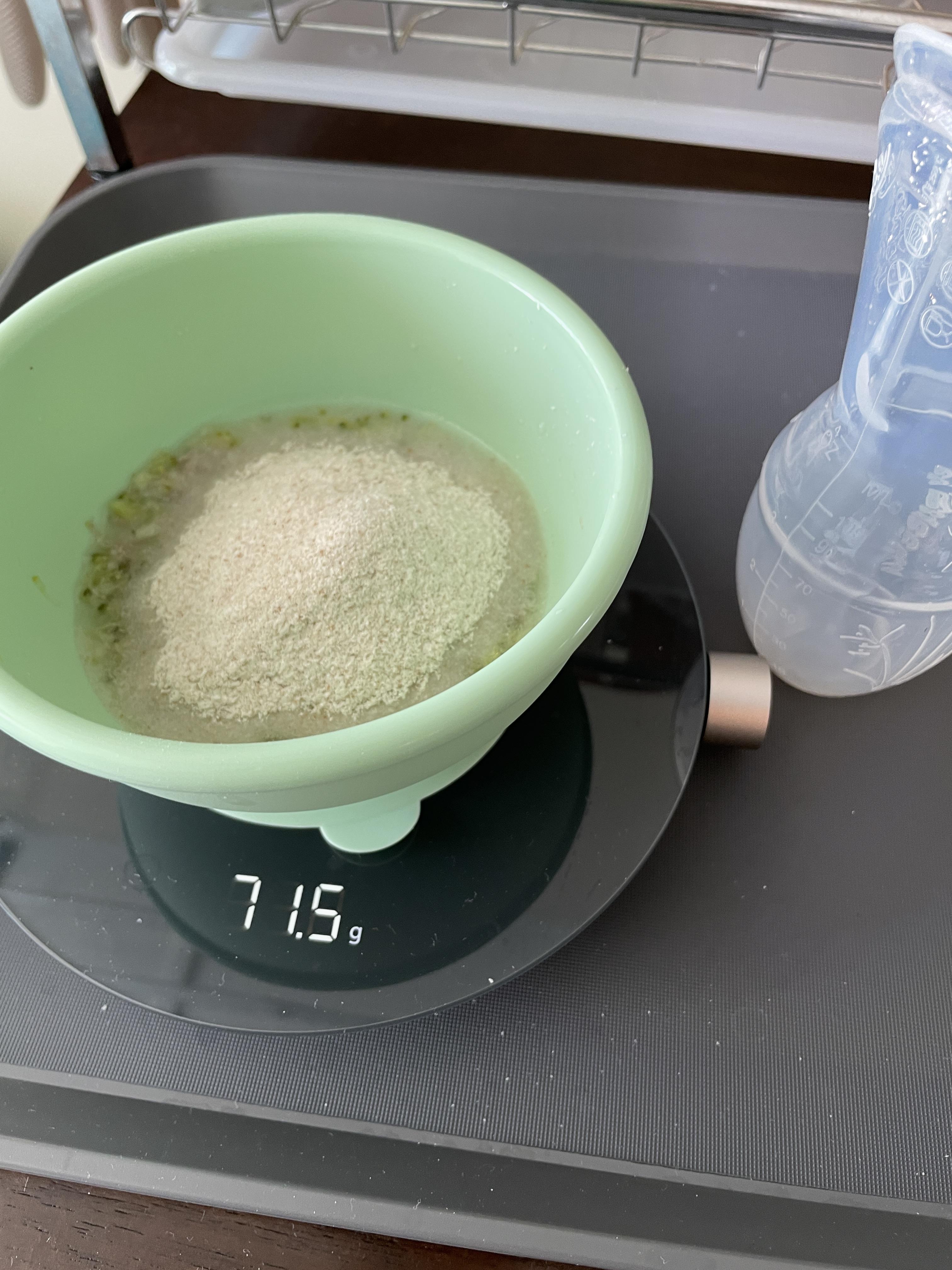 브로콜리&소고기에 멀티그레인을 섞어 70g으로 만들어줬는데 다 먹음!