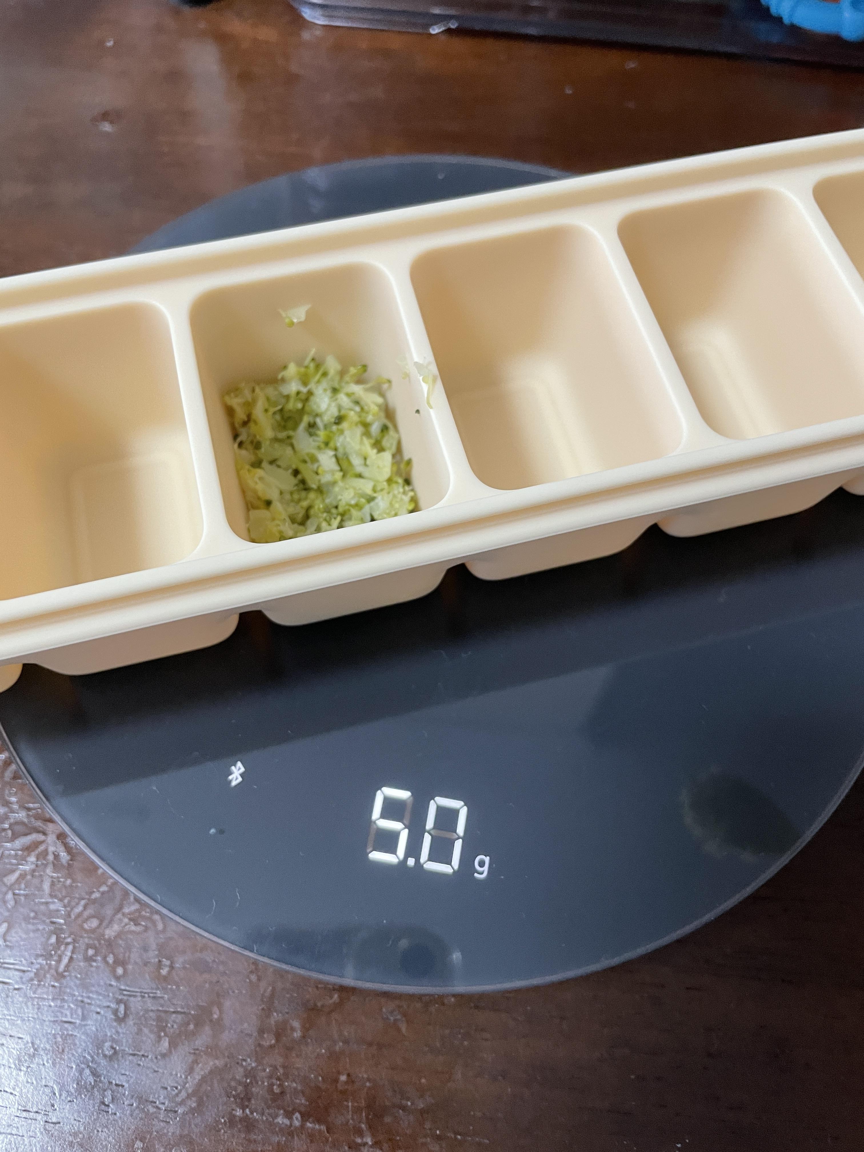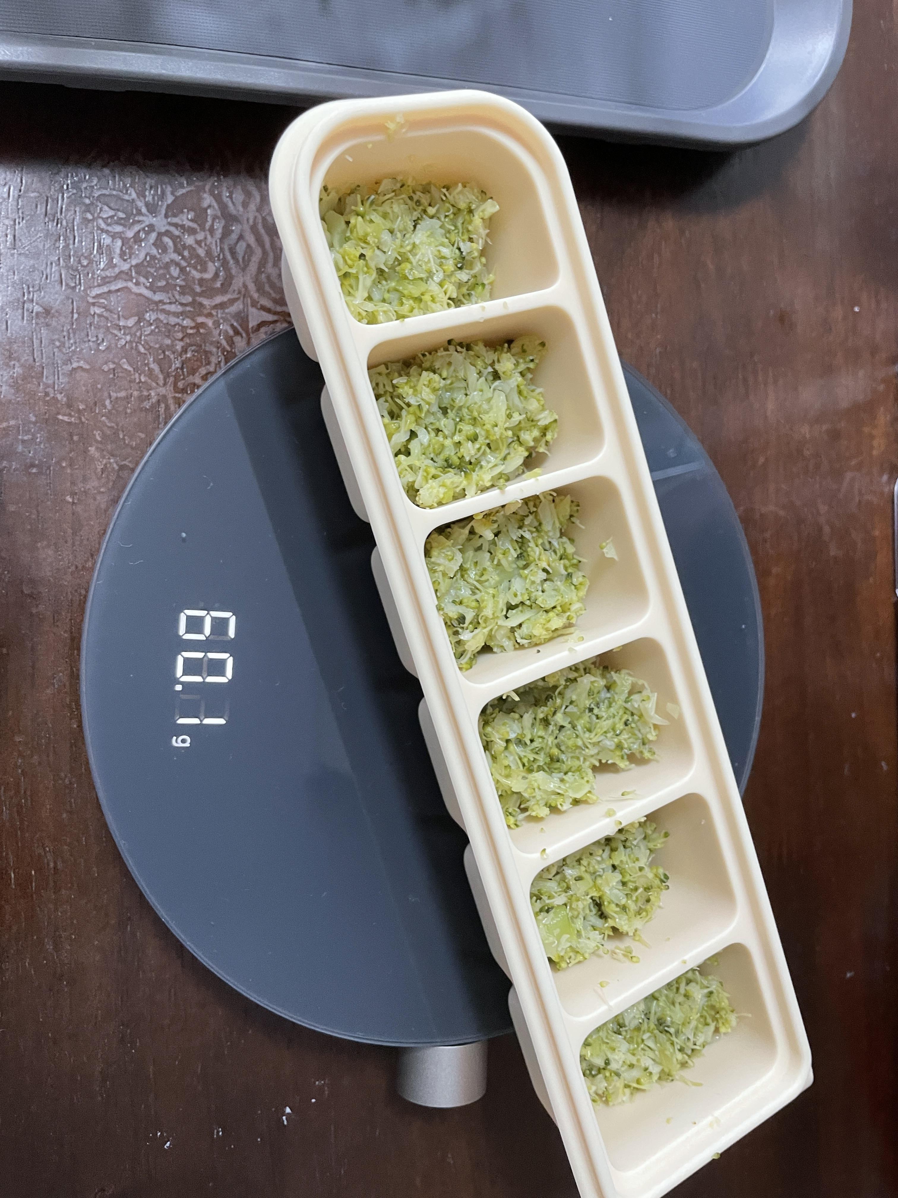 오가닉 브로콜리 좀 작은거 사서 식초물에 담갔다 빼서 스팀으로 찌고고 쵸퍼로 갈아서 큐브보관함...
