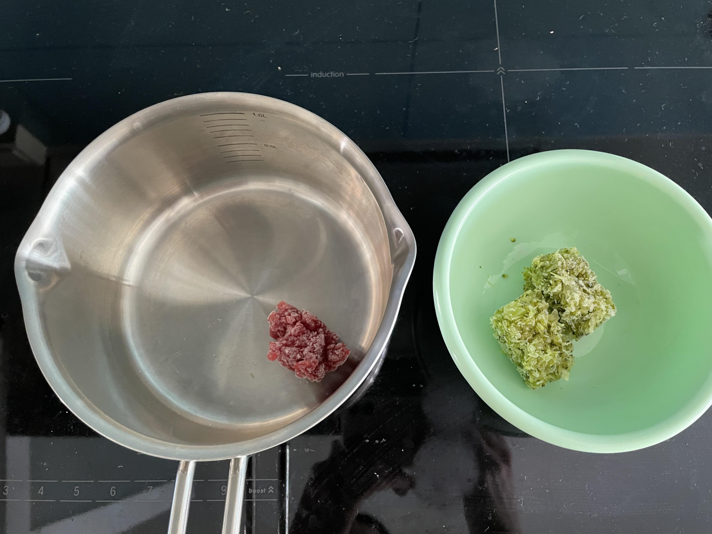 오전에 하루 먹을치 소고기 10g 끓여서 거기에 브로콜리 큐브 2개 투척했다.
