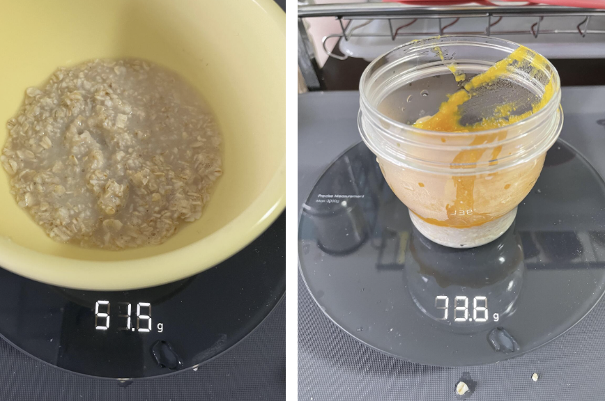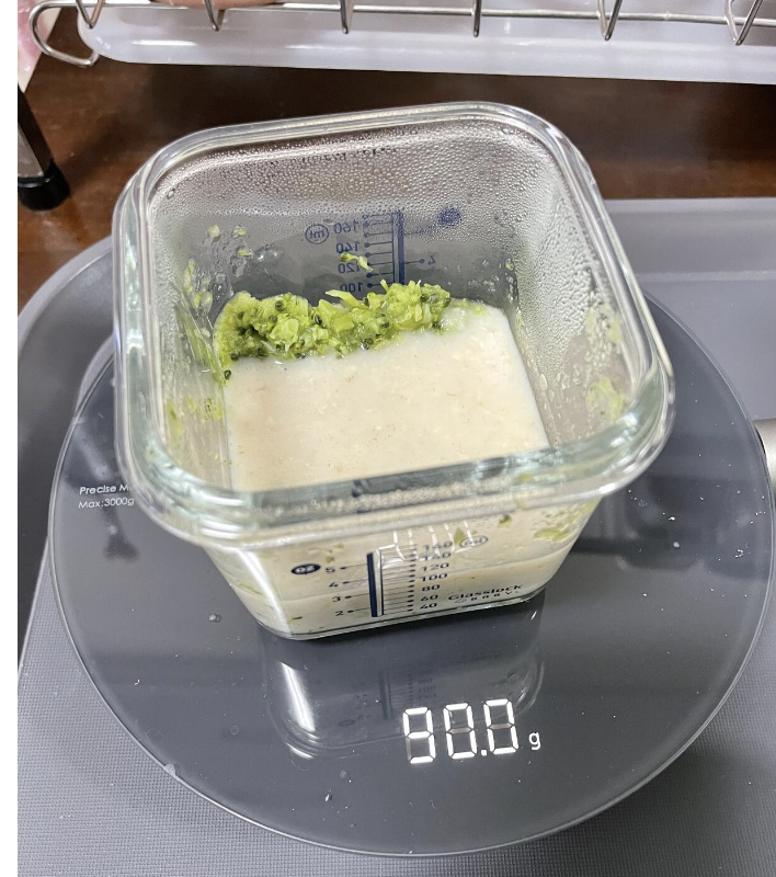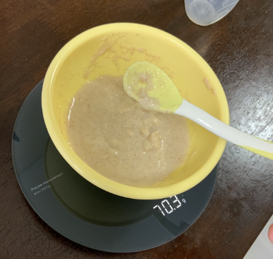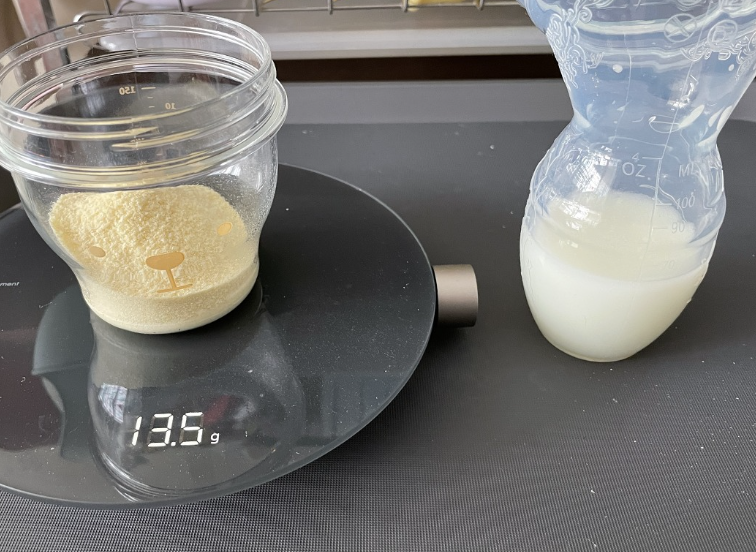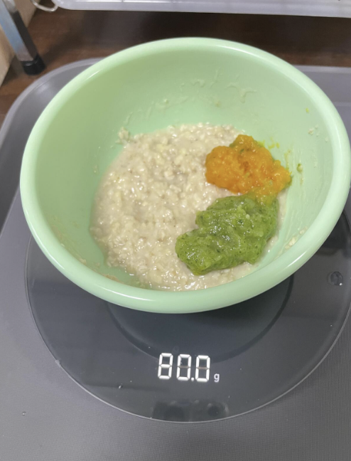 원래 레시피는 분유를 섞는건데, 나는 유축해서 모유를 섞어 먹였다.