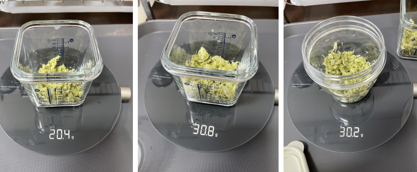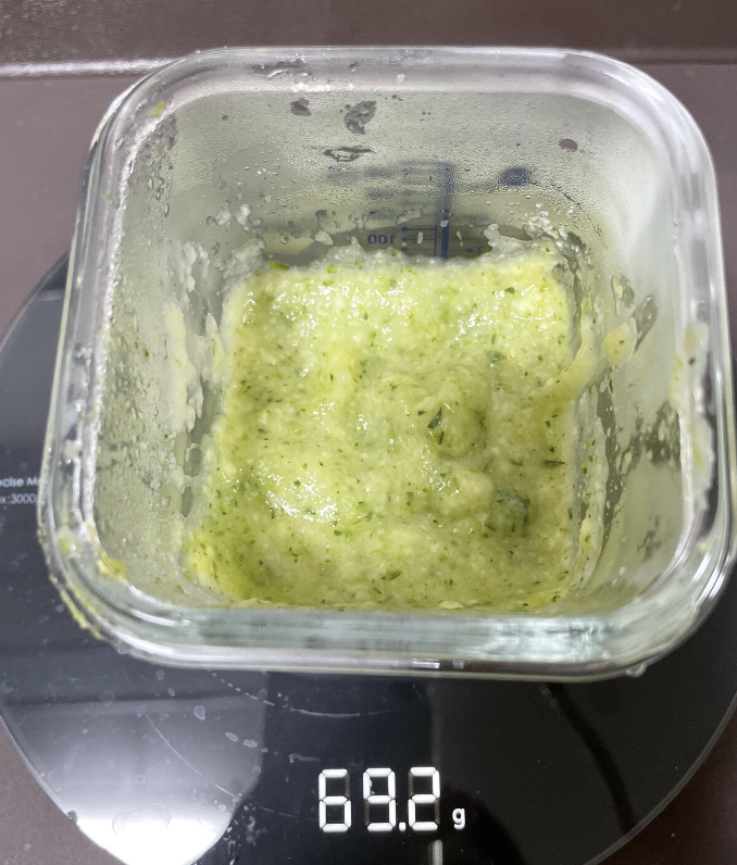 주키니 큐브 만들기 - 구입 : 마트 오가닉코너 - 세척 : 물에 세척. - 조리 : 상처가 났던 부분과 꽁다리양쪽 모두 잘라주고, 슬라이스 해주었다. 그리고 찜기에 찜. - 다지기 : 쵸퍼로 다졌는데...