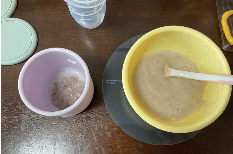 바로 만들어 먹일 수 있는 시리얼이어서, 큐브보관 없음! 분유물을 섞어 먹이는 건데, 나는 완모여서 유축모유 섞어먹였다. *모유를 섞어서 거부감 없이 시작가능 *모유 섞으면 맛있음... *유축의