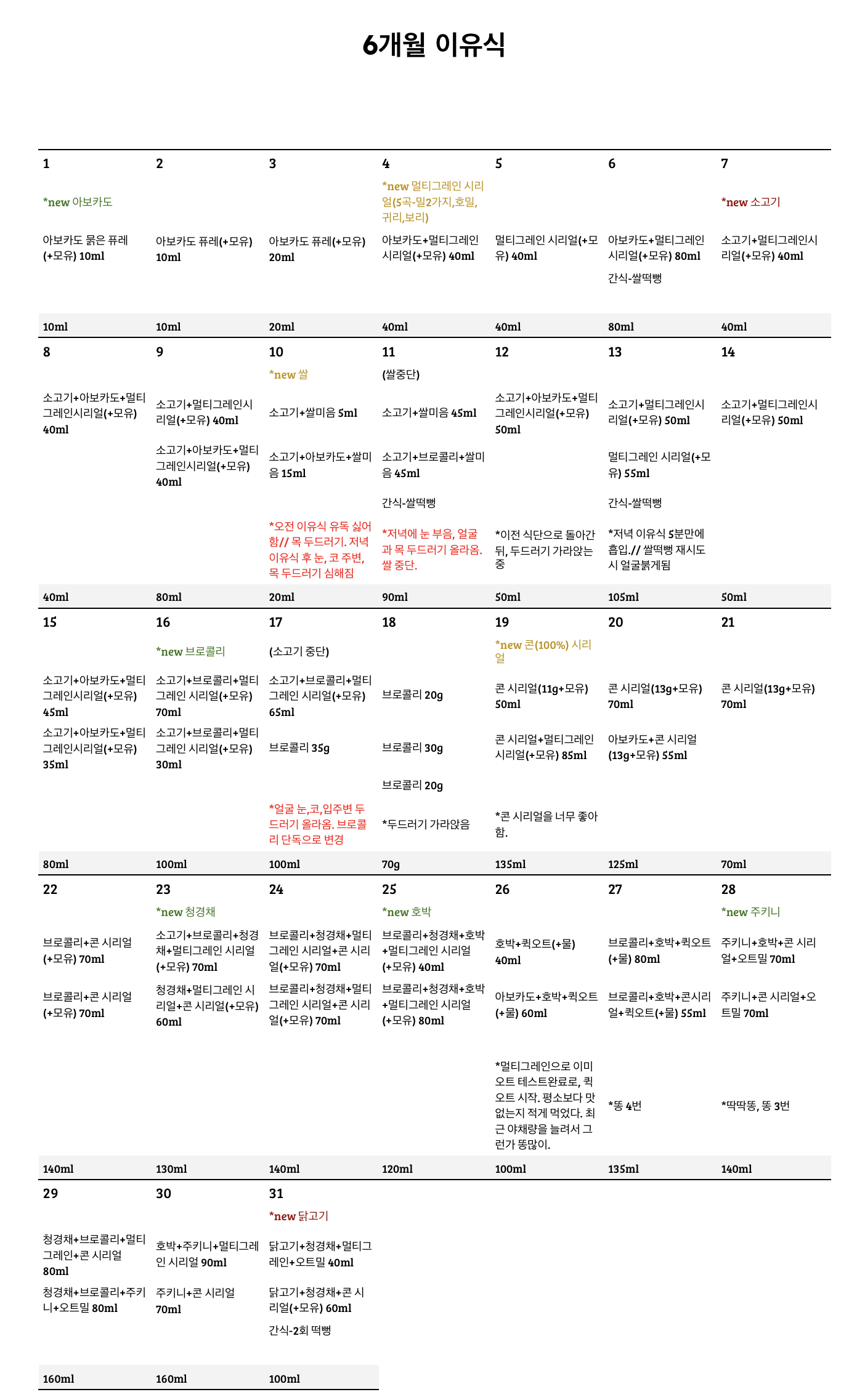 [육아] 알레르기 의심 후 이유식 4일간 기록 / 멀티그레인, 모유, 소고기, 아보카도 / 양도 늘리고