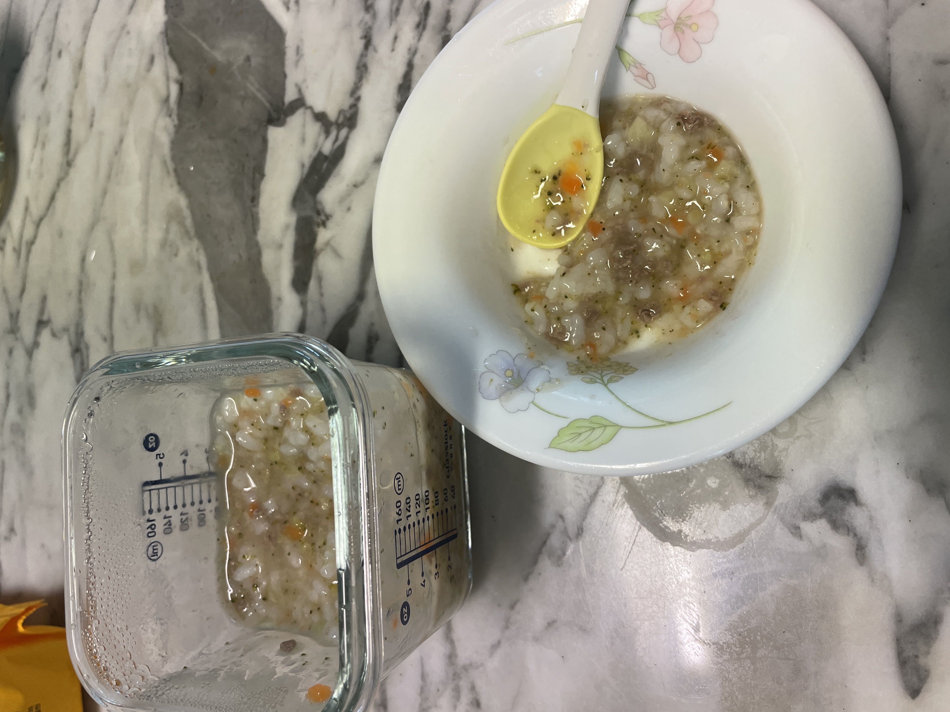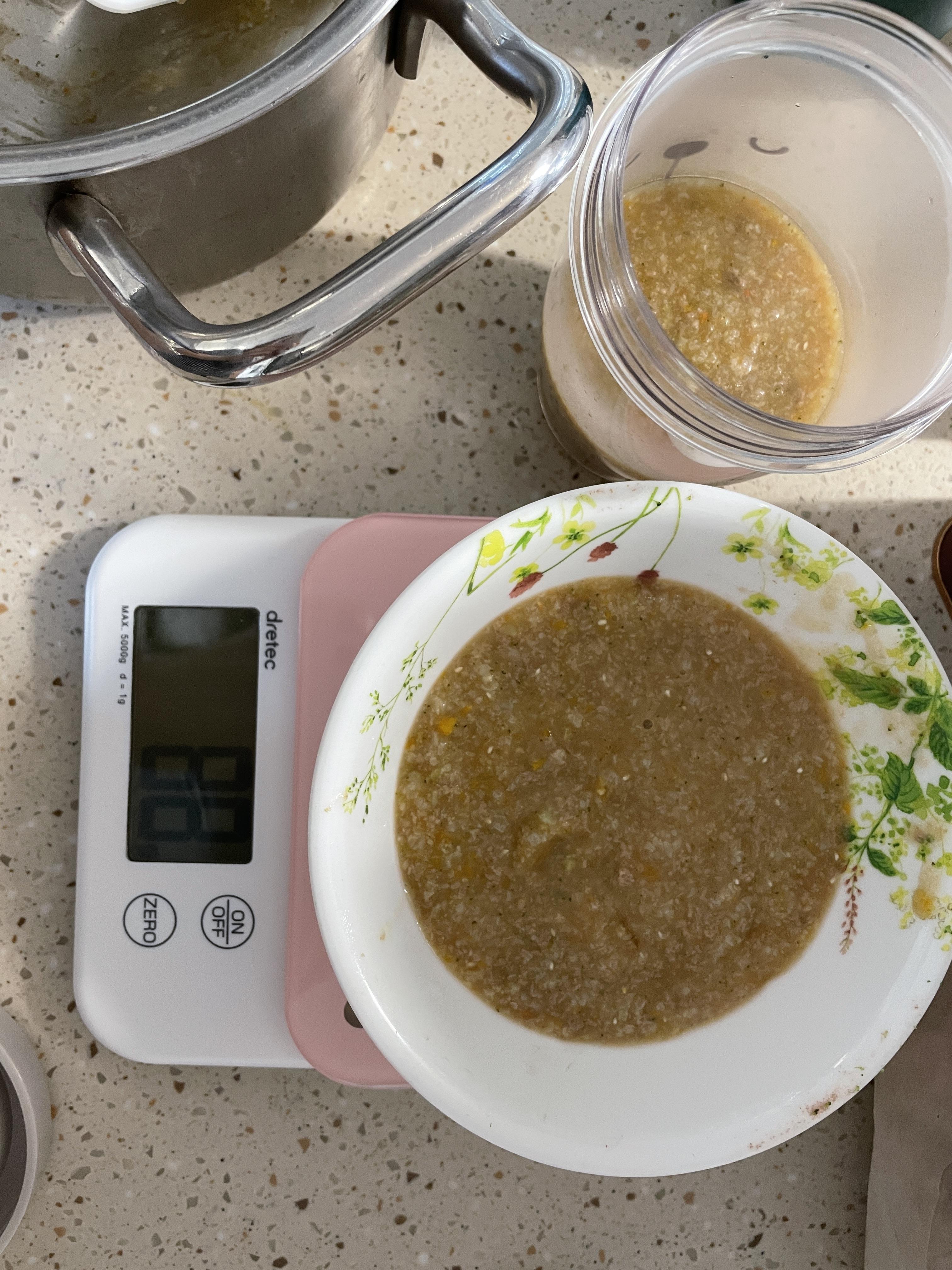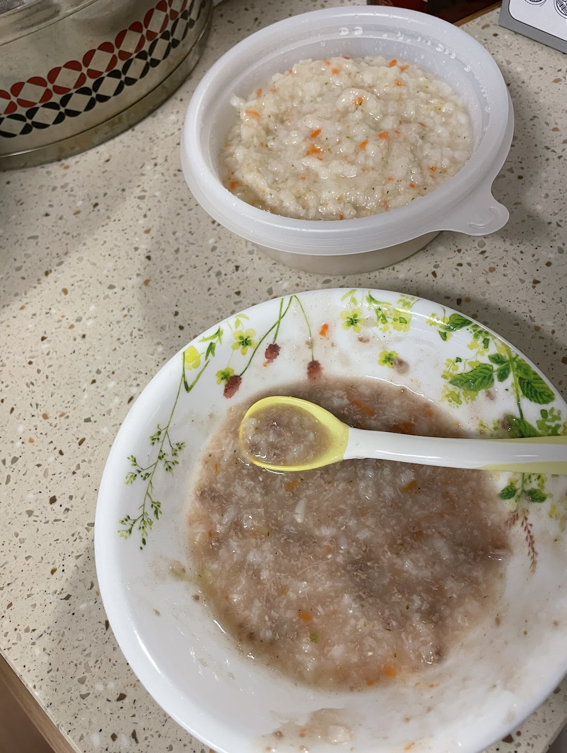 그런데 이유식에 단백질이 적어 소고기를 추가해서 만들어주었다.