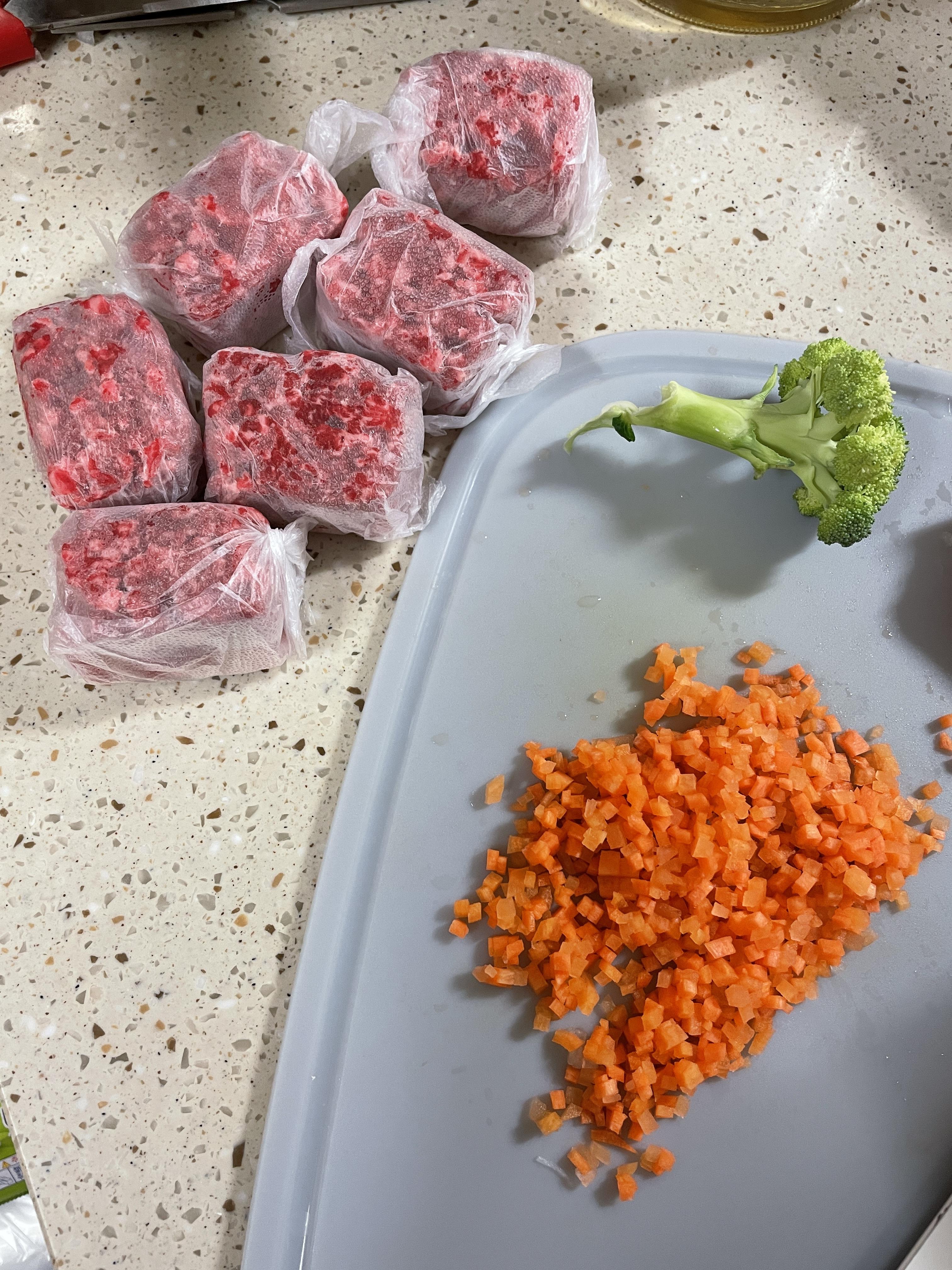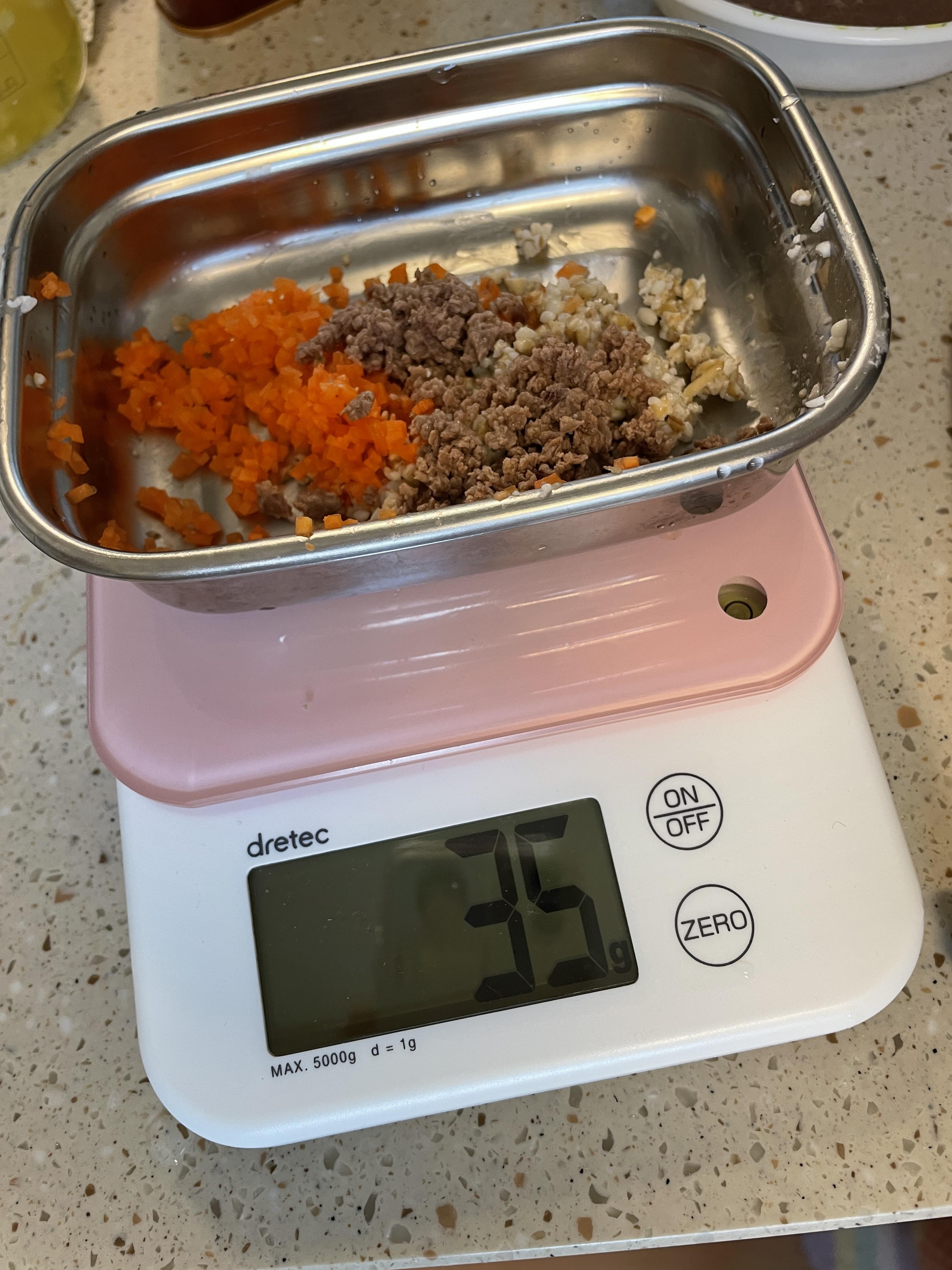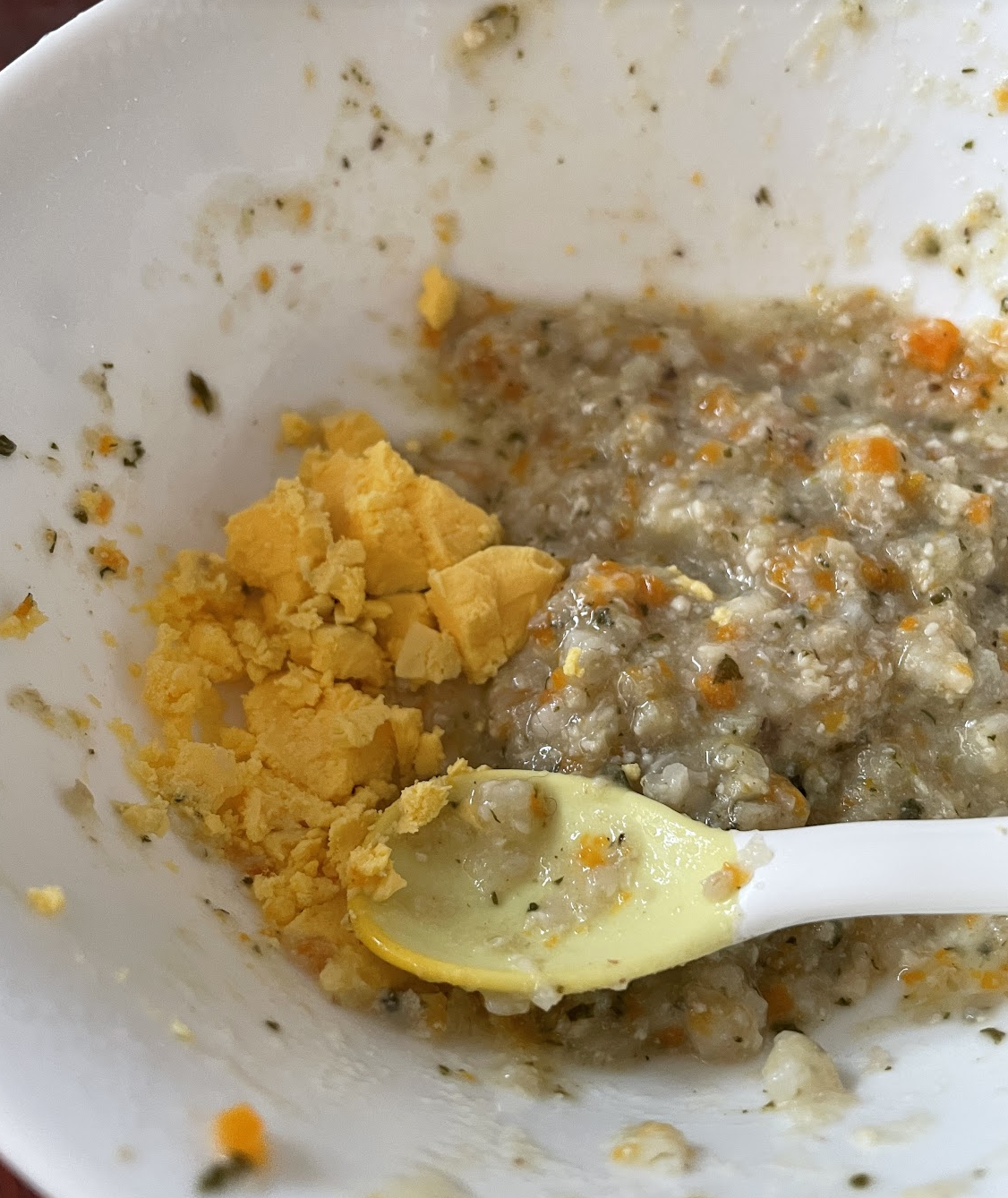 그런데 이유식에 단백질이 적어 소고기를 추가해서 만들어주었다.