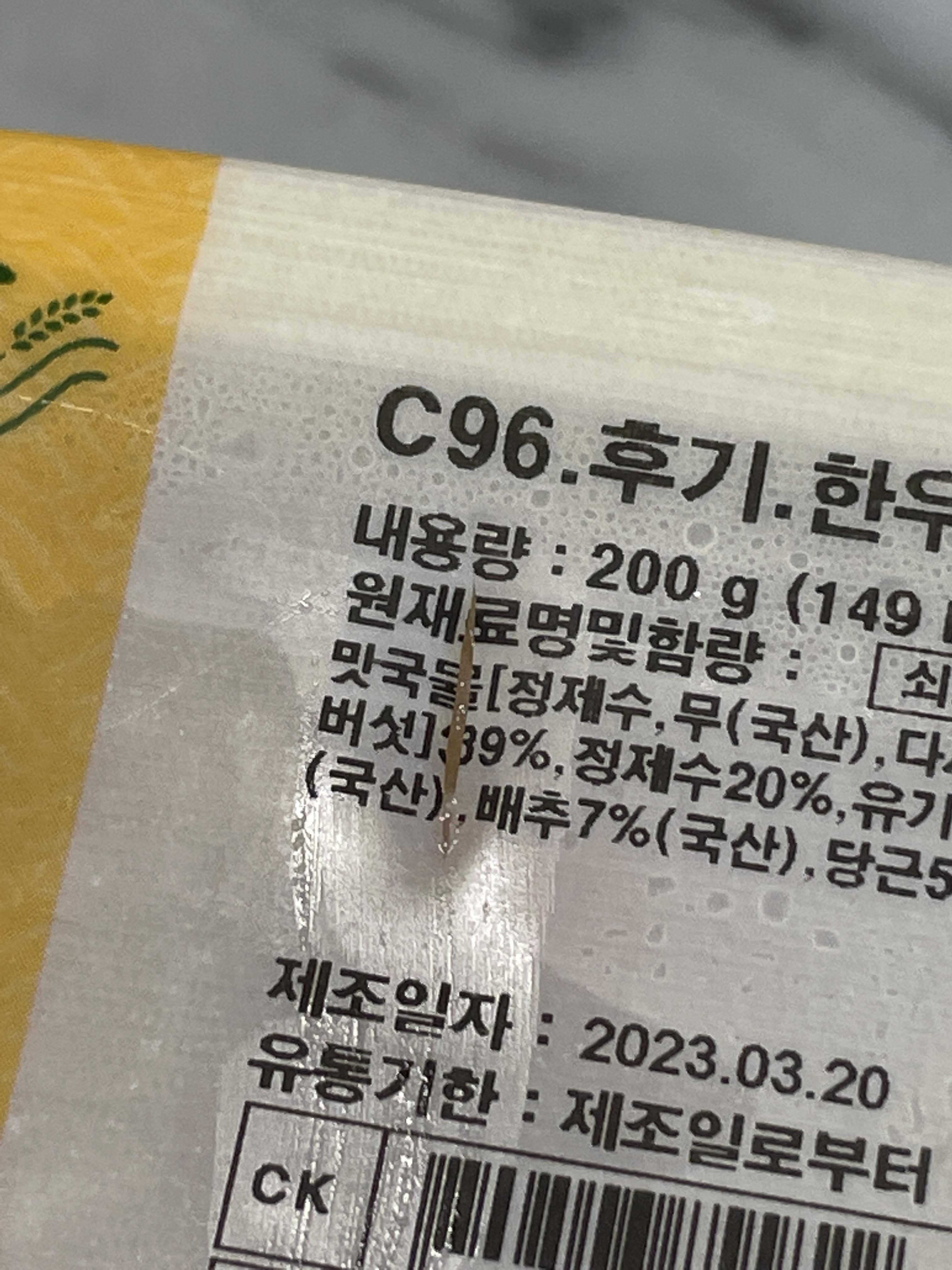한번은 이유식 패키징이 아무래도 플라스틱에 비닐로 되어있다보니 저렇게 찢어져있기도 했다^^;;