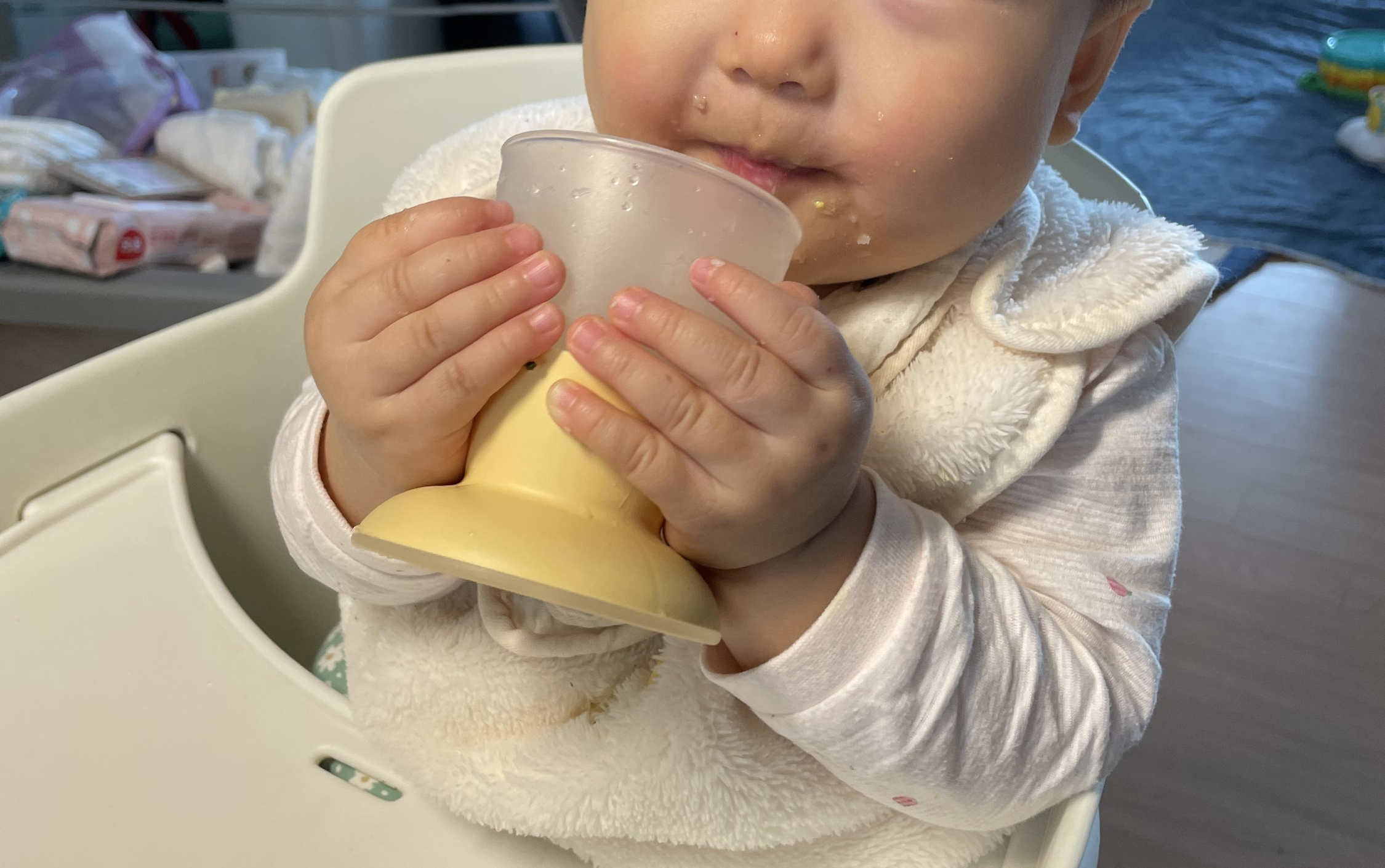 여전히 컵으로 먹는 것이 서툴지만, 이때쯤 부터 차근차근 해왔더니 컵으로 제법 쩝쩝대며 잘 먹는다. ㅋㅋ