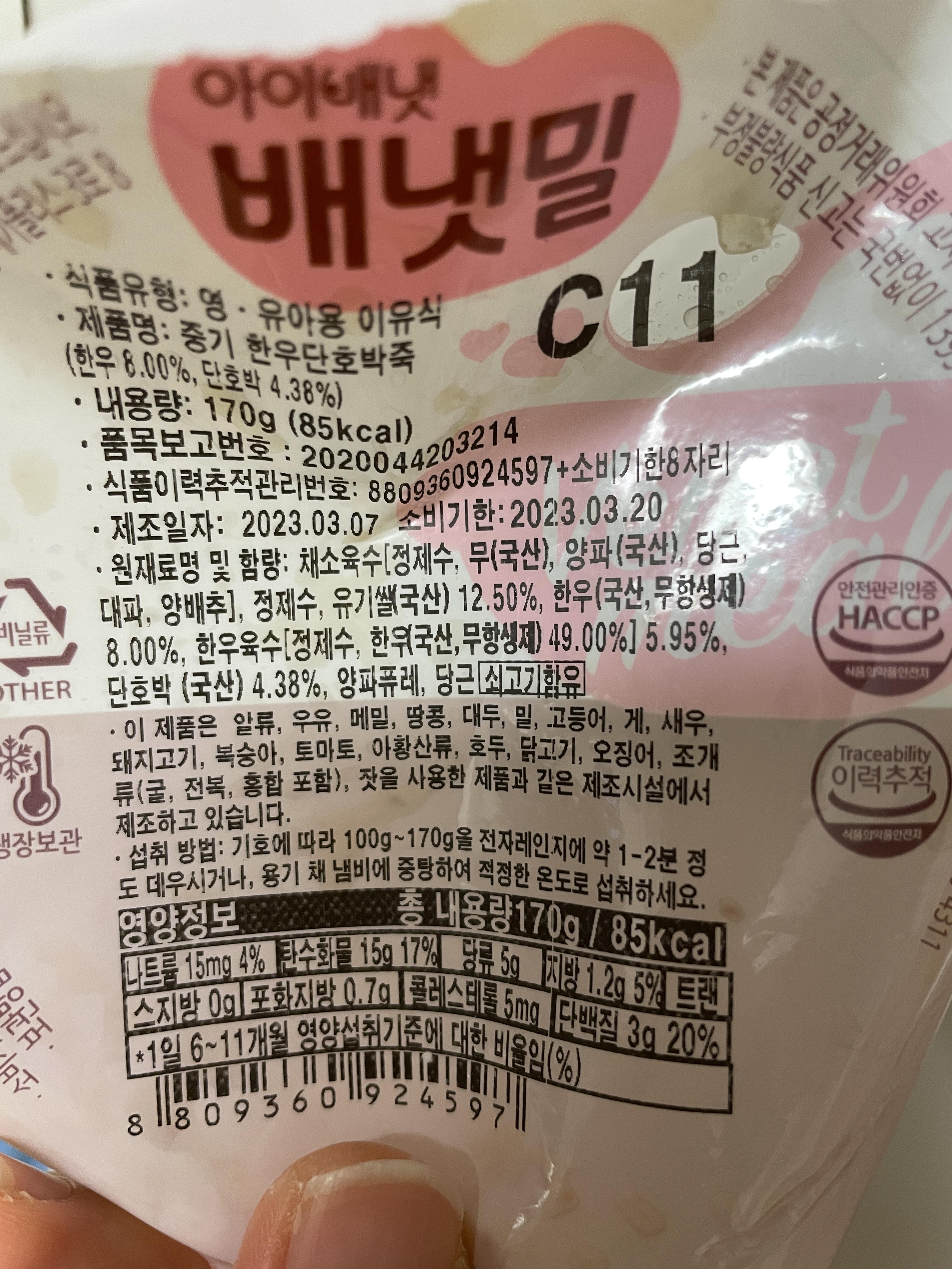 드디어 받아본 배냇밀 이유식. 함량 모두 살펴보고 주었다.