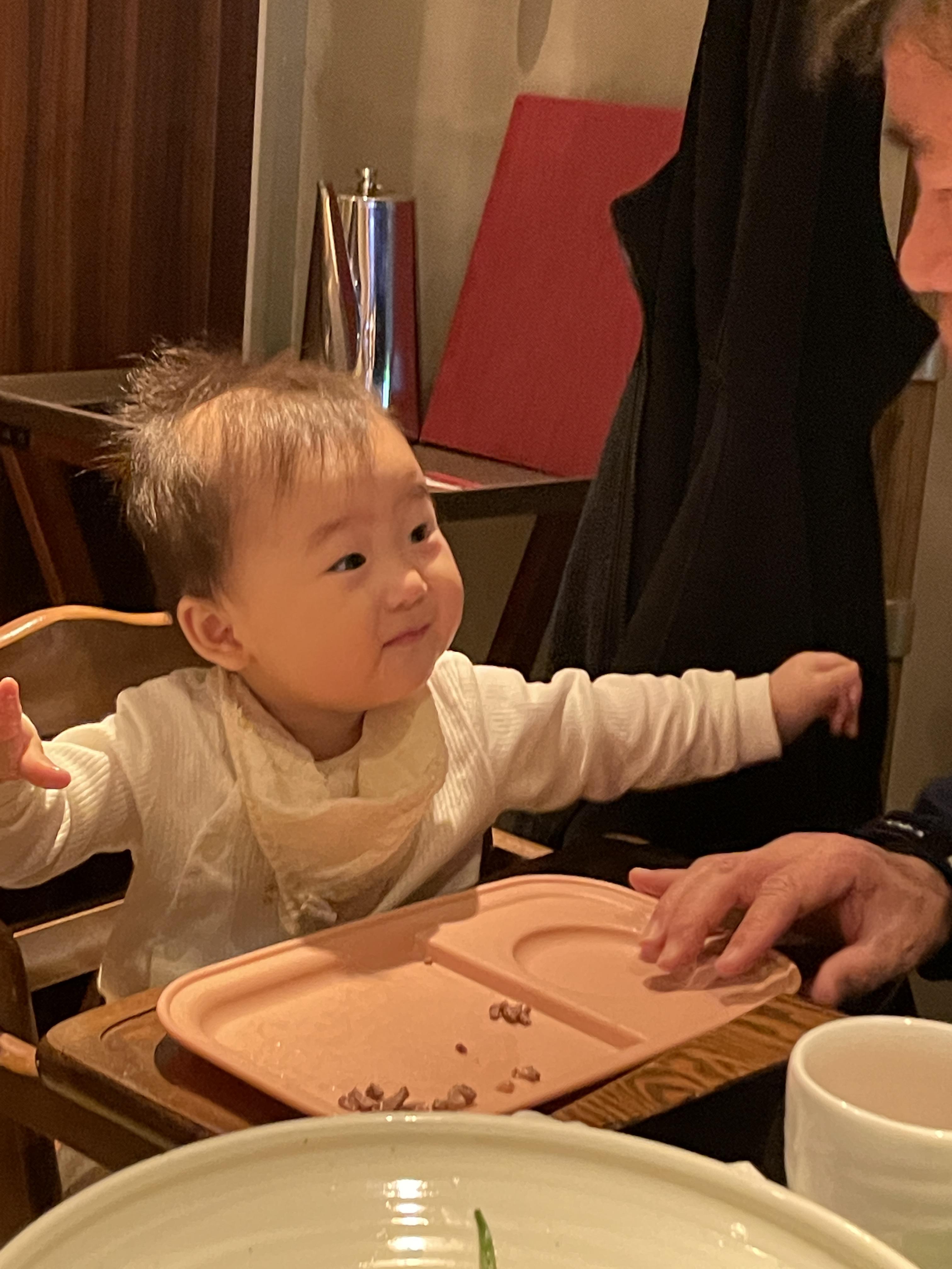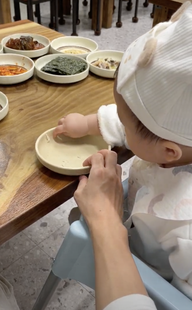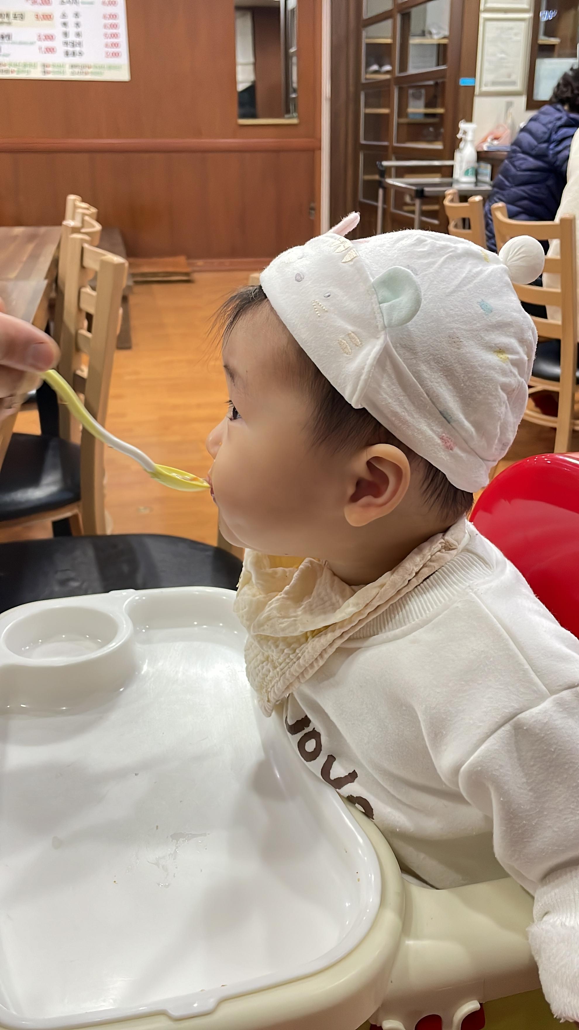 가족 다같이 외식하러 가서는 우리애기 줄만한 것들도 먹여보기도 했다.