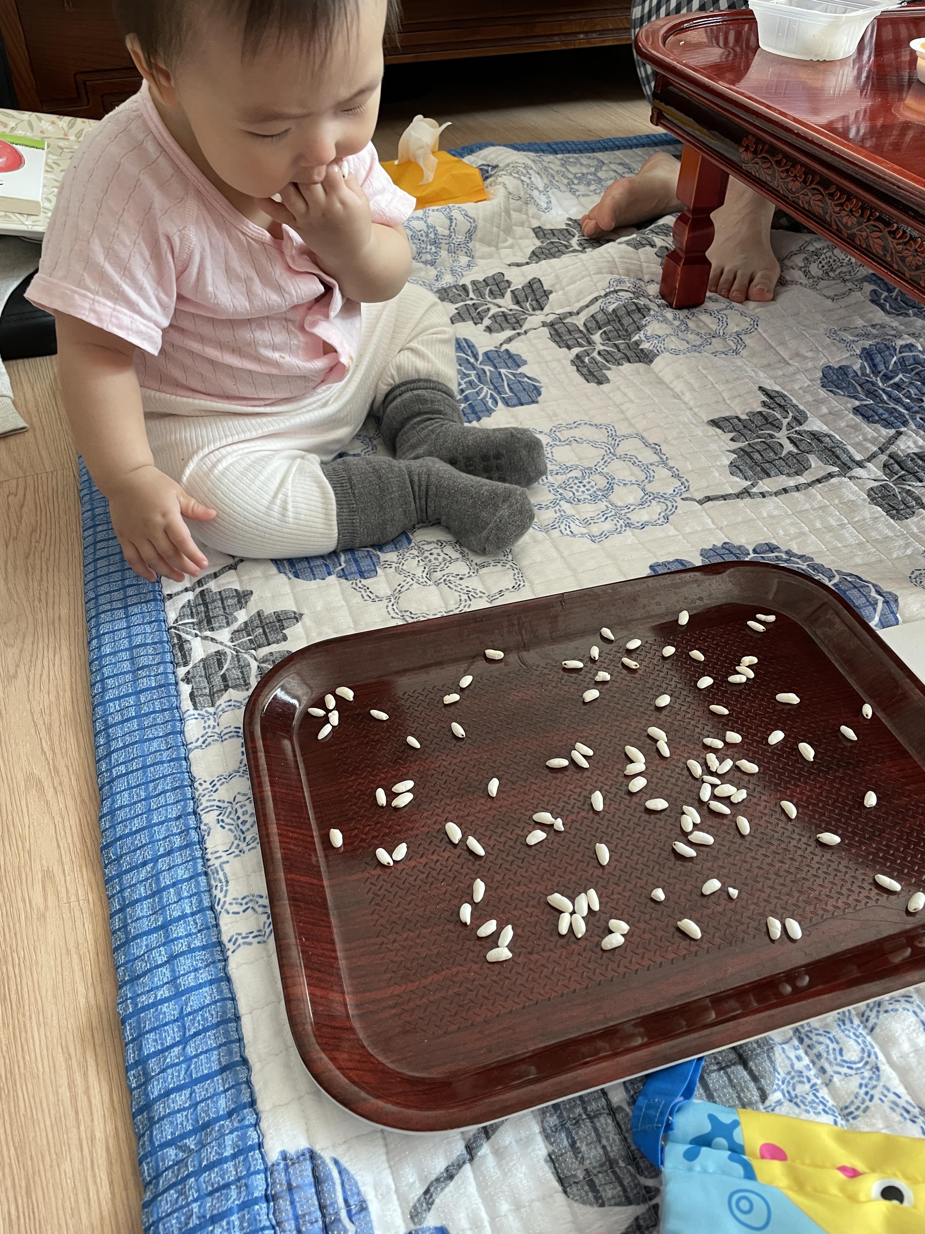 집에서 마사지받을때, 마사지사분이 애기들 튀밥 흩뿌려주면 정신없이 먹는다고해서 줘봤는데...
