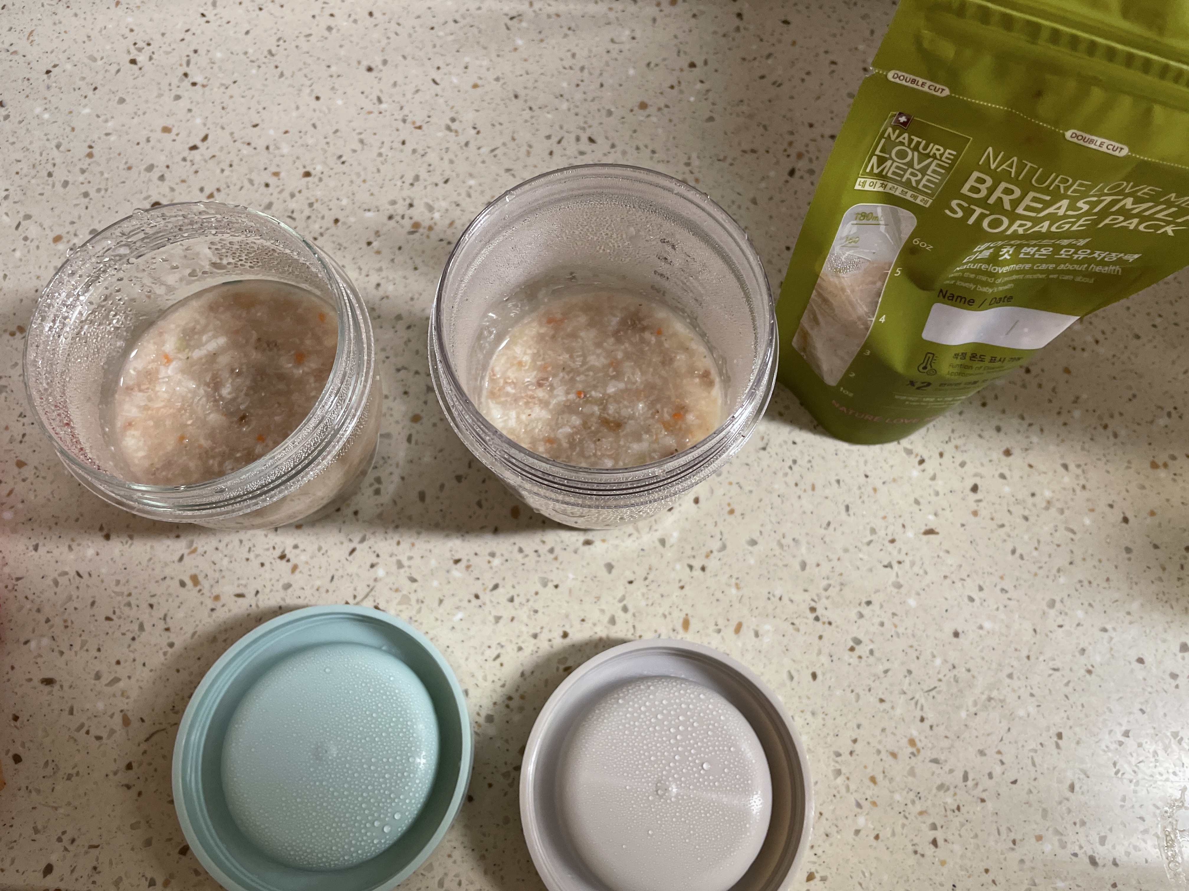 출국전날 만든 이유식. 밥솥으로 하면 편하긴한데 다양하게 한번에 하려면 노하우가 좀 생겨야하는 것 같다.