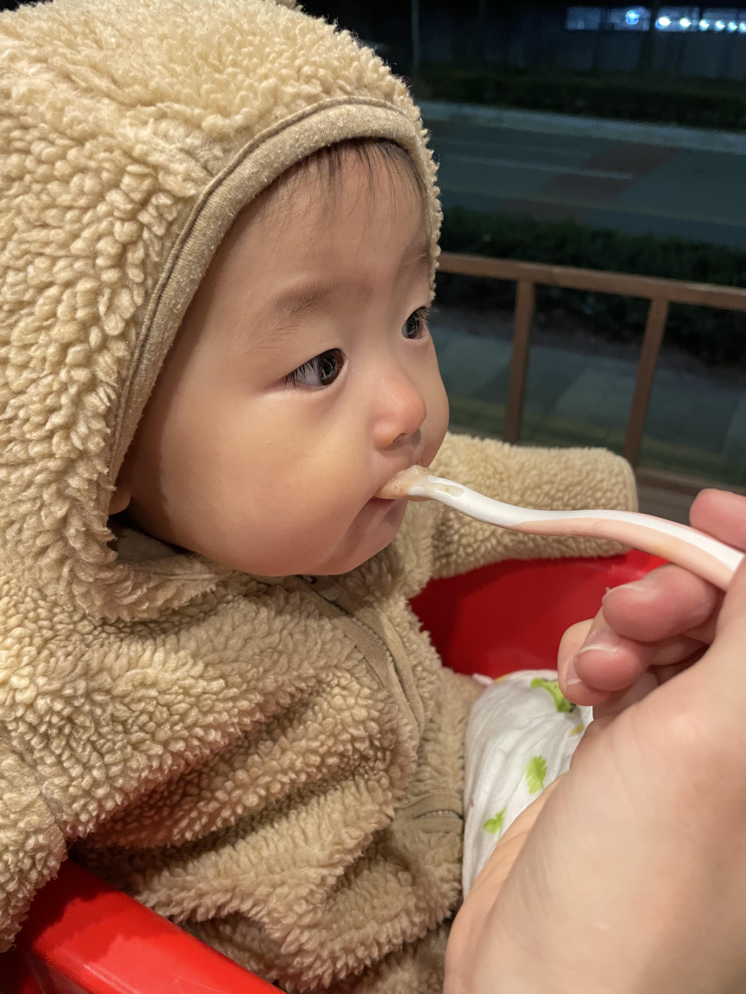 싸돌아댕기는 엄마 따라서 밖에서 이유식 먹는 날이 참 많았네.