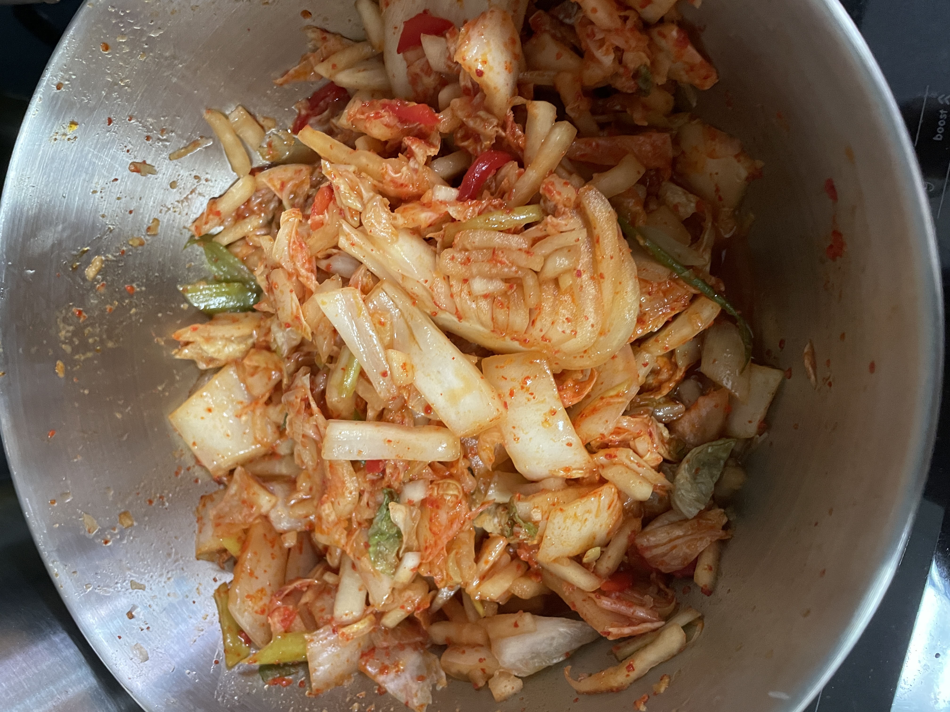 아이를 위해서 백김치를 만들었지만 실질적으로 아이가 백김치 자체를 많이 먹진 않았다. 오히려 요리에 쓰이는 경우가 많았음.