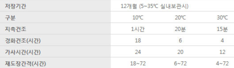 20℃기준 1일 후 보행 가능, 3일 후 차량통행 가능.